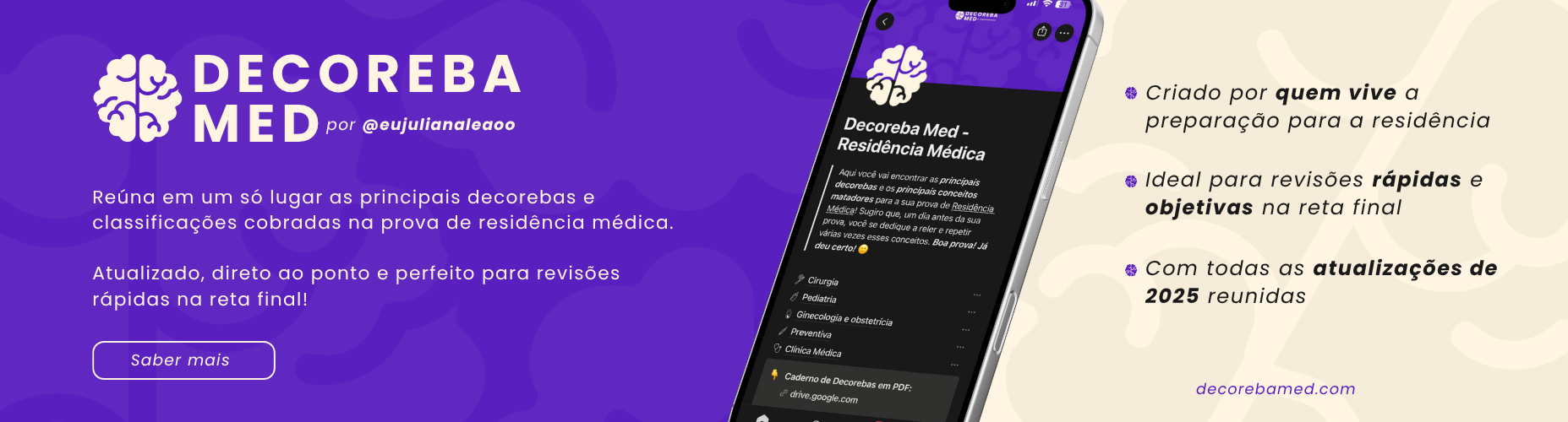 Cada resumo foi cuidadosamente elaborado a partir de aulas dos cursos preparatórios para Residência mais prestigiados do Brasil, garantindo conteúdo de qualidade e confiabilidade.