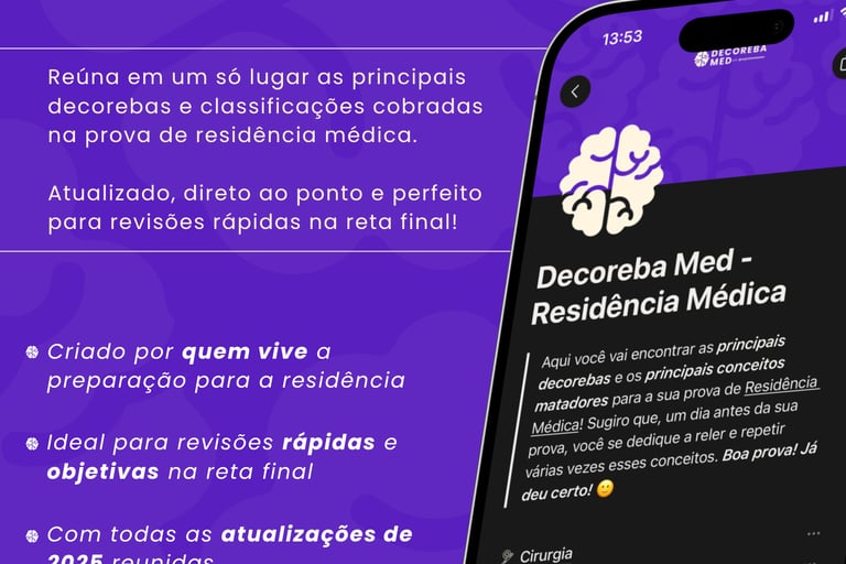 Com o Resumo Med, você estuda com eficiência, consolida o conteúdo e eleva sua performance na preparação para a Residência Médica.